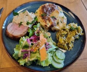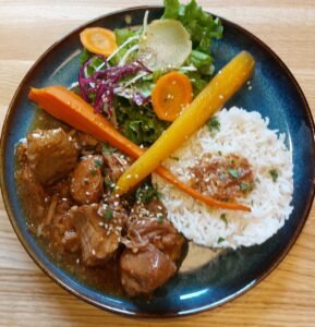 Le midi, notre restaurant vous permet de découvrir de nouvelles saveurs au gré de l’inspiration de notre équipe! La cheffe choisit et renouvelle sa carte entièrement fait maison jour après jour, avec au minimum une proposition végétarienne et une proposition carnée chaque jour.