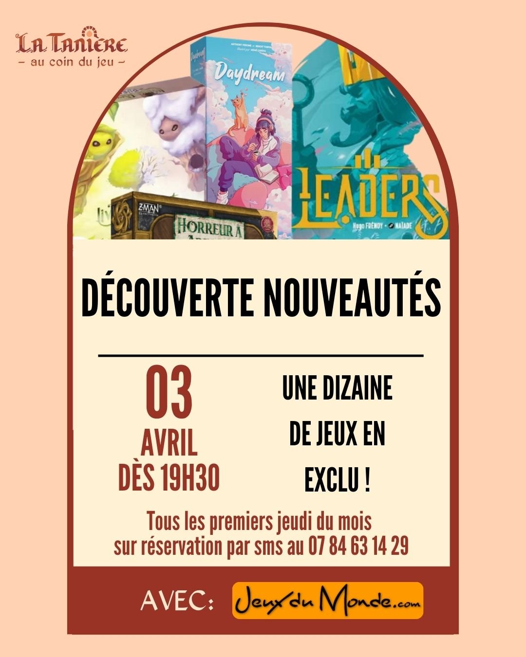 Prochaine découverte nouveautés avec jeux du monde : le jeudi 3 avril au soir.