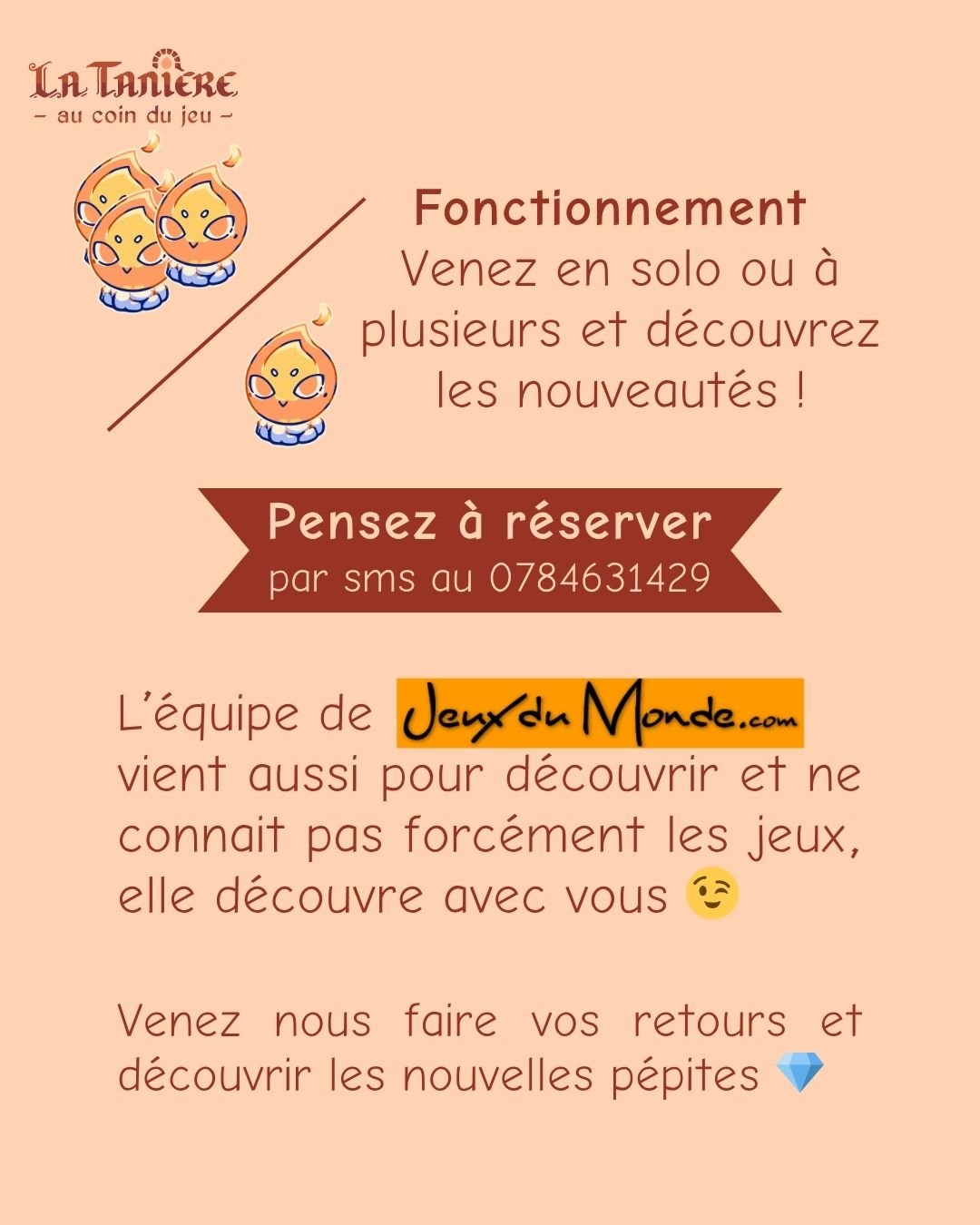 Les jeux sont disponibles pendant deux semaines jusqu’à la soirée tichu, date à laquelle jeuxdumonde récupère ses jeux (sauf si il y a des jeux qui sont très très appréciés et qu’on achète 😉).